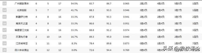 四川男篮则是目前为止最为尴尬的球队,12场比赛拿到0胜12负,全联盟唯一0胜的球队,上一场更是主场错失拿到首胜的机会。